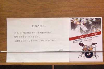 ドリンクとパンを食べながら友達の演奏を
